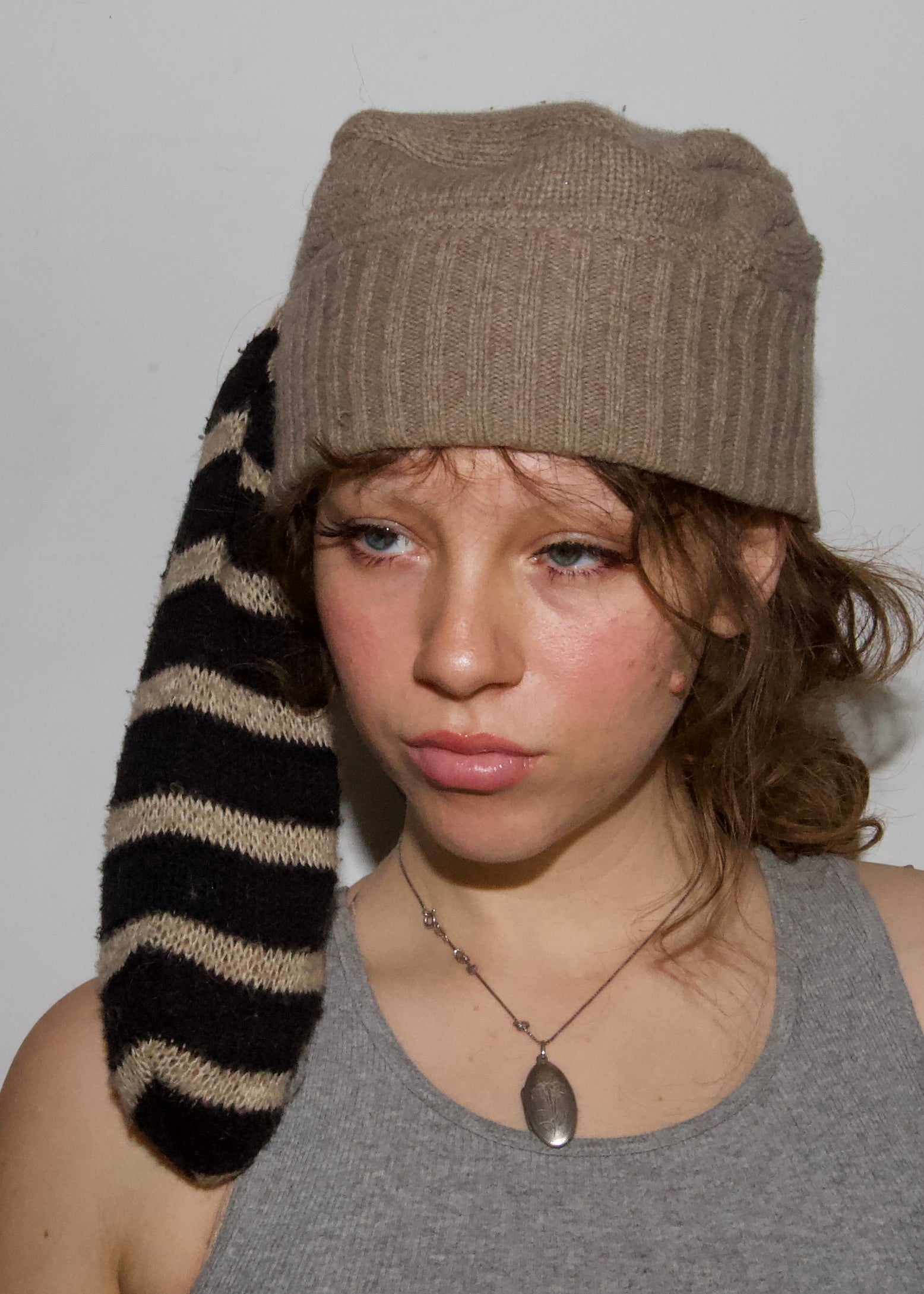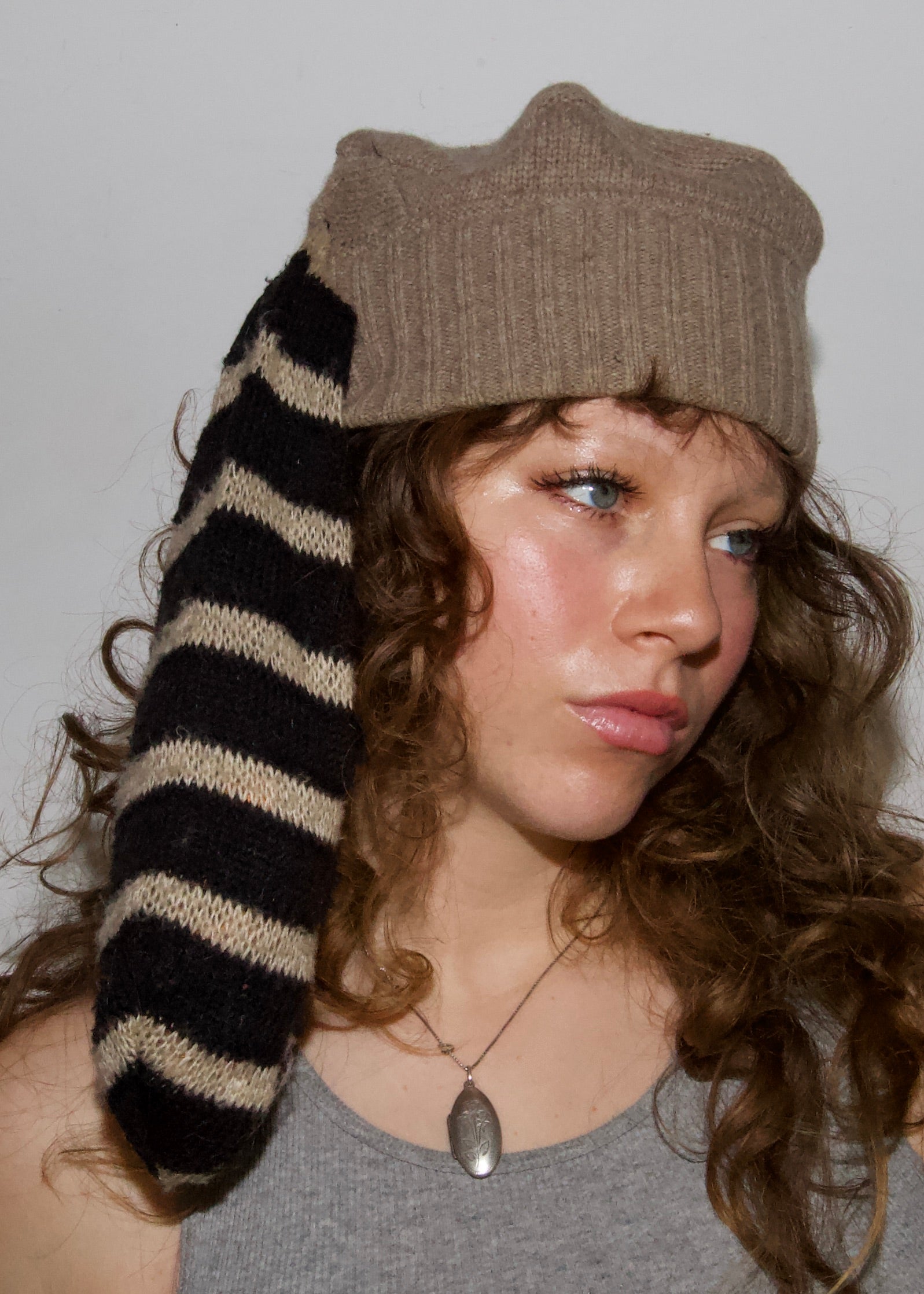 This raccoon tale maskie hat was made with the remnants of 2 used jumpers. The faux tail, is stuffed with little pieces of fabric scraps, forming a soft pillow for naps, or something to play with while the wearer thinks. This maskie hopes to keep the wearer close to the adventurousness of childhood. It hopes to let each day flow as weekend days did as a child.